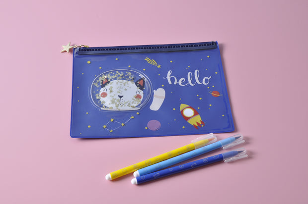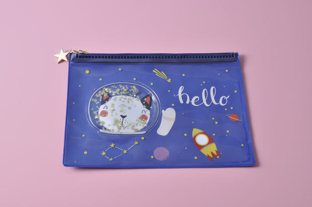 Are you looking for a wonderful pouch to organize your stuff? This multifunctional pencil case can be your best choice. It is so cool and funny. The unique water and glitter-filled cover is charming and interesting, you can play with the glitter and move things up and down when you are tired after your working or studying.