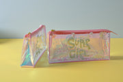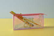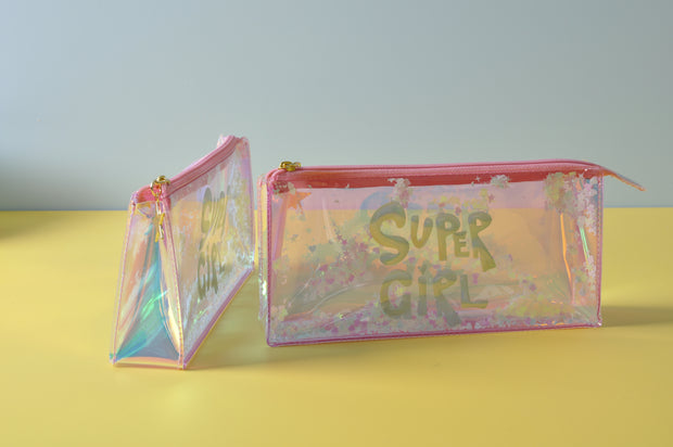 This glitter pen pouch is so cute and charming, it easily attract others' first glance and win the favor of girls. The inspiring words "Super Girl" is full of energy, it encourages girls to be brave, confident and express their creativity freely.The glitter-filled cover is shining with words "Super Girl" is truly gorgeous, you can find beautiful lights with a lot of colors.
