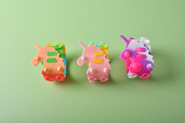 ★ Unicorn Suction Cup Bracelet: A Unicorn colorful bracelet with suction cups looks very nice and funny to play with Children may find this unicorn toy bracelet entertaining and soothing. This simple decompression suction cup wristband has the effect of relieving stress. It comes in bright colors and brings a youthful vibe to it. it will become a trendy accessory for children and teens!